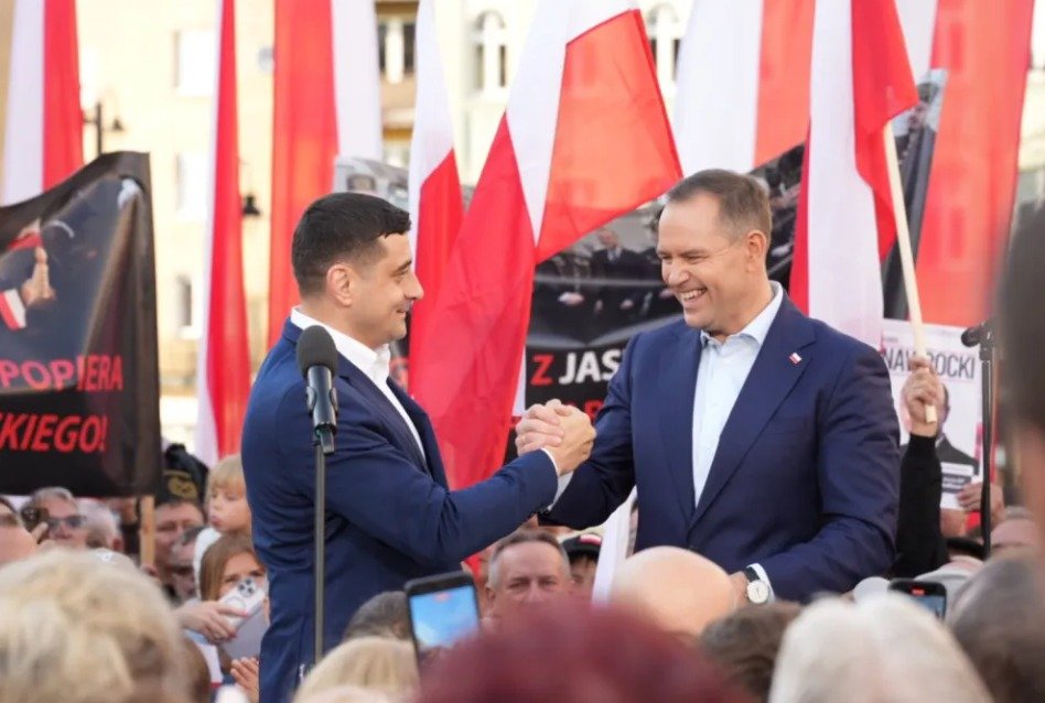Întrebat de moderator despre victoria lui Nawrocki din Polonia, Simion a vorbit despre partidul populist și național conservator, de extremă dreaptă, „Lege și Justiție”, despre care spune că a avut o influență mai mare.