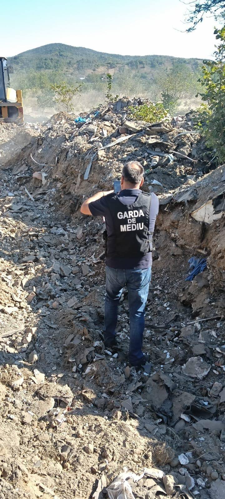 Polițiștii și comisarii de mediu au constatat astfel, că au fost îngropate pe acest teren, pe o suprafață de aproximativ 100 mp și 2 m adâncime, în jur de 100 de tone deșeuri de construcții periculoase și nepericuloase, de către persoana fizică care le-a și transportat.
