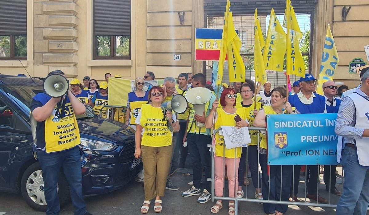 Protestele din educaţie au început în urmă cu aproximativ o lună şi vor continua în fiecare zi, în faţa Ministerului Educaţiei, timp de cel puţin două ore, în prima parte a zilei.