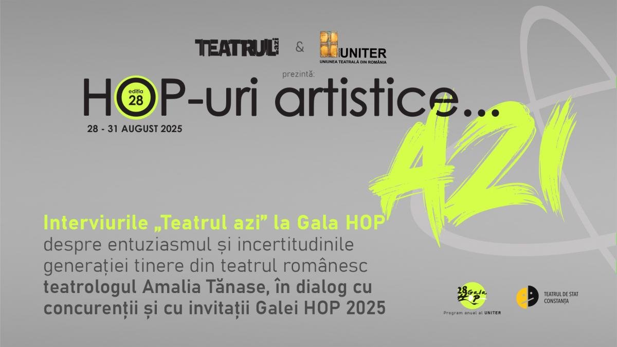 Gala HOP, locul unde teatrul românesc își descoperă și susține noile voci, aduce în acest an un plus de profunzime printr-o serie de dialoguri inițiate de Fundația Culturală „Camil Petrescu”: „Interviurile Teatrul Azi”, moderate de teatrologul Amalia Tănase. Un parteneriat solid între UNITER și Revista Teatrul Azi, reconfirmat și prin acest demers.
