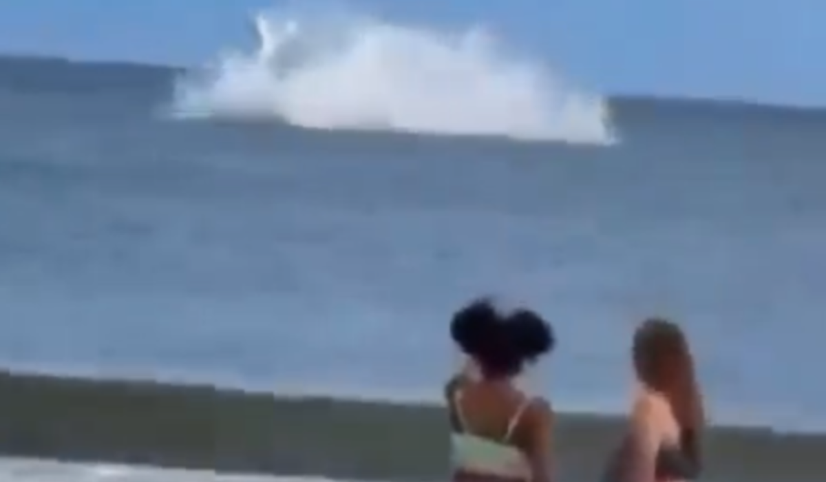 Oamenii de pe plajă sunt îngroziți – unii își pun mâinile la gură, iar altul strigă: „O, Doamne!”