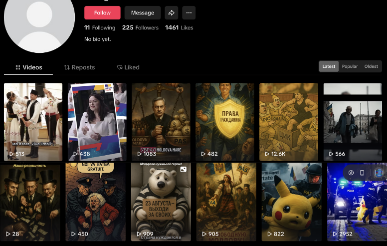 Raportul intitulat „Analiza comportamentului inautentic coordonat în Moldova: 23 de zile înainte de alegeri” se bazează pe analiza a 3.392 de videoclipuri, 36.338 de comentarii și 100 de conturi false identificate.