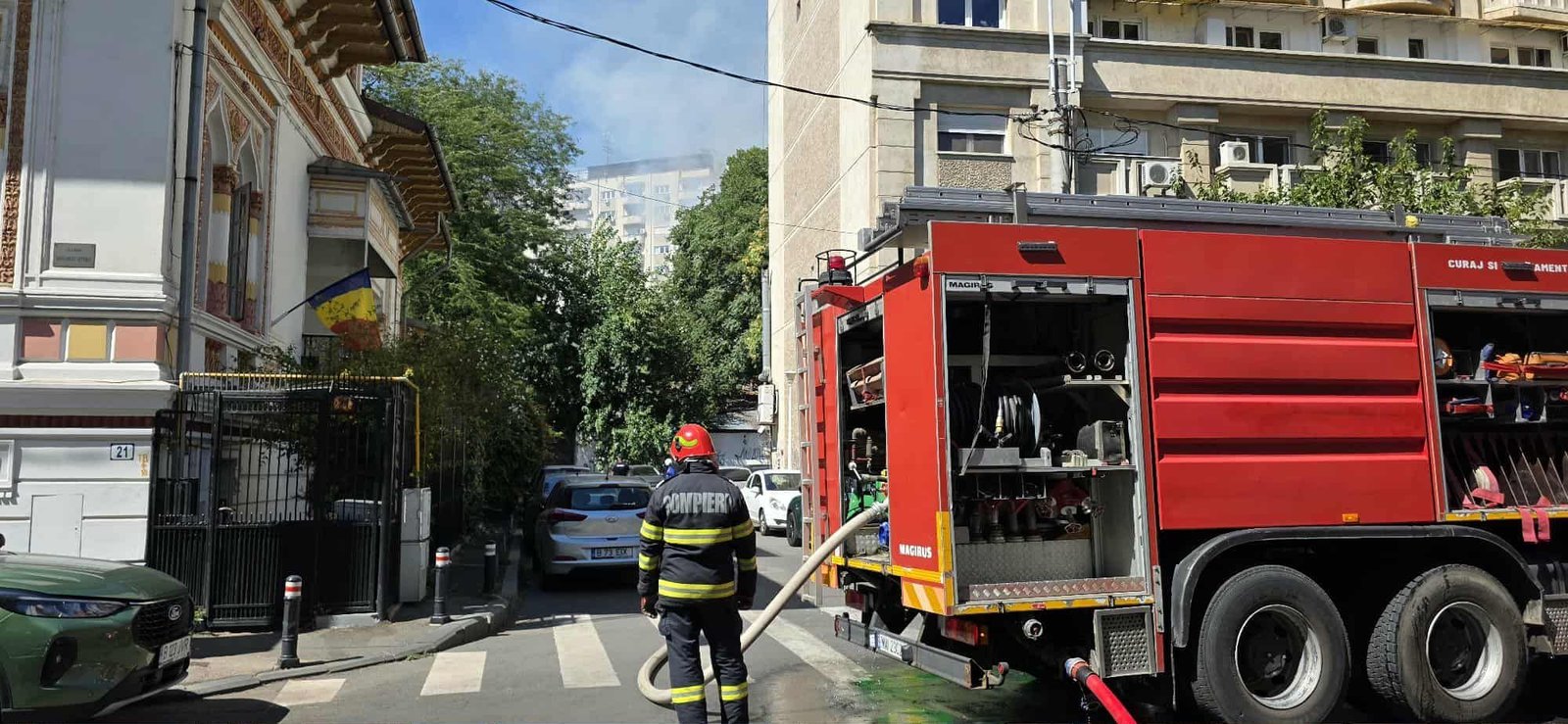Pompierii de la ISU București Ilfov intervin, joi, pentru stingerea unui incendiu produs la fostul restaurant Mărul de Aur, de pe strada Sevastopol din Capitală.