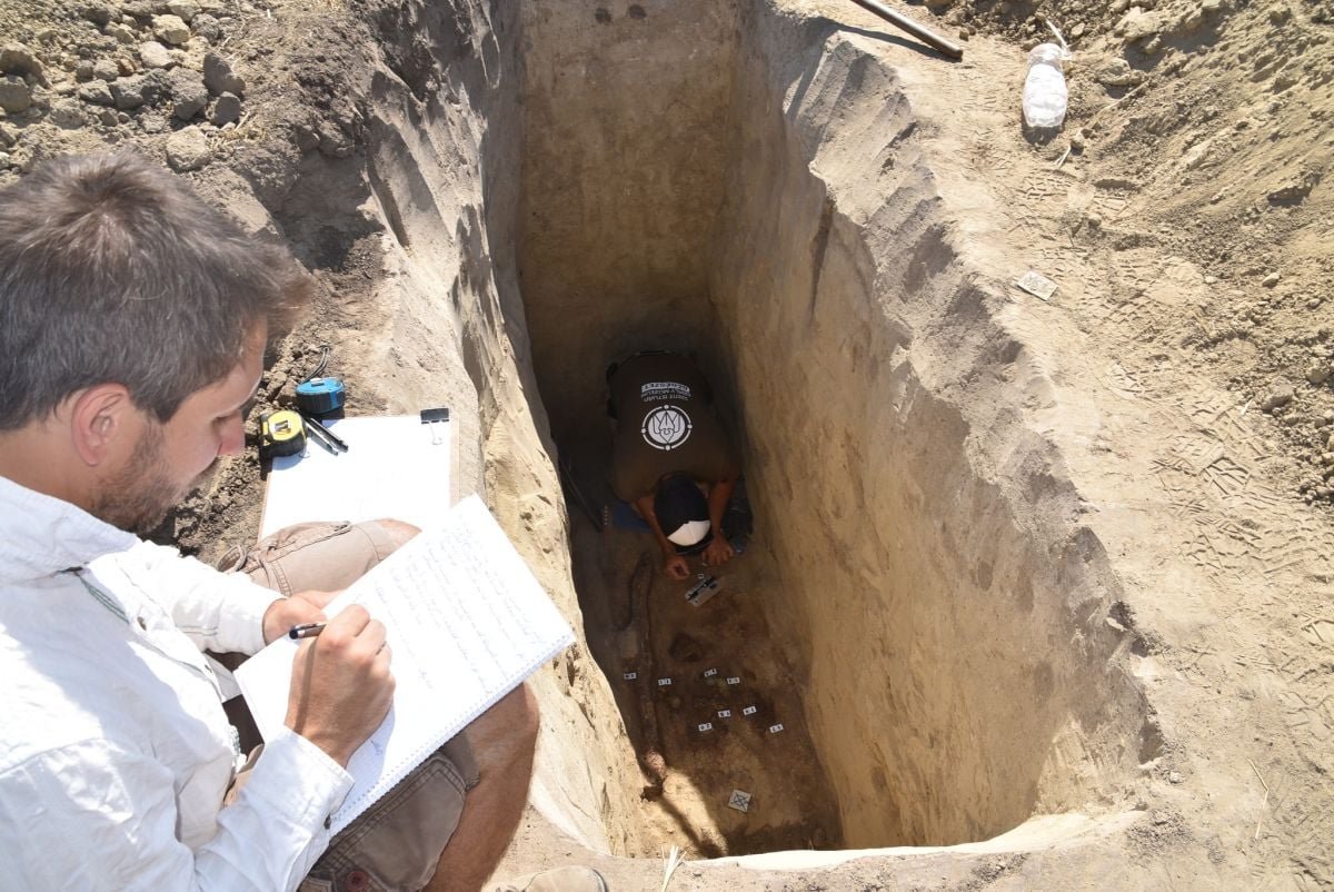 Scheletul războinicului a fost descoperit în același loc. Deși partea inferioară a corpului și brațele erau bine conservate, craniul, toracele și abdomenul fuseseră distruse de jefuitori, potrivit raportului muzeului.