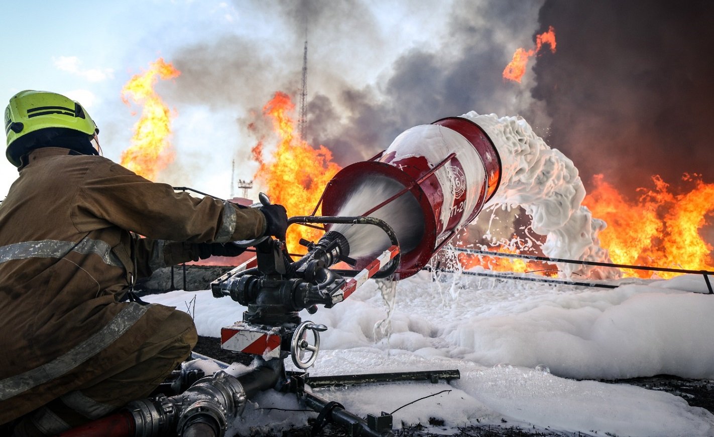 На Полтавщині рятувальники продовжують ліквідацію масштабної пожежі на одному з підприємств, яка виникла внаслідок масованого російського обстрілу Займання сталося на кількох окремих локаціях.